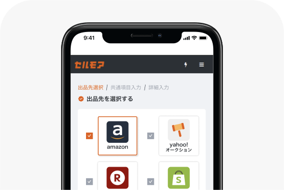 カテゴリや商品の状態の一括選択や入力必須項目がわかりやすくなっており、出品に慣れていないお客様やスマホから直接出品したい方におすすめの機能です。