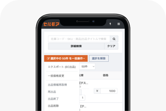 出品した商品の一括価格変更、在庫連動連動機能など、複数モールの管理をRECORE EC一つで管理可能です。