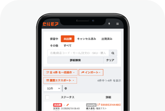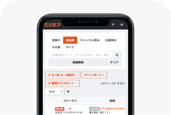 各モールで受注した情報をRECORE ECで一覧表示。モールにログインせずに受注処理ができます。