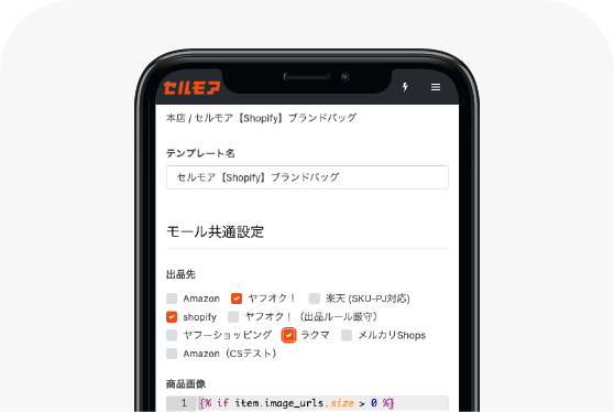 各モールごとに出品情報をテンプレート化し、作業効率を上げることが可能です。