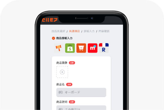 カテゴリや商品の状態の一括選択や入力必須項目がわかりやすくなっており、出品に慣れていないお客様やスマホから直接出品したい方におすすめの機能です。
