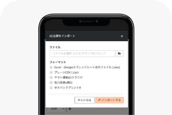 発送商品はボタン一つでデータの書き出しが可能。ヤマト運輸と佐川急便のシステムに取り込めば、カンタンに送り状発行できます。